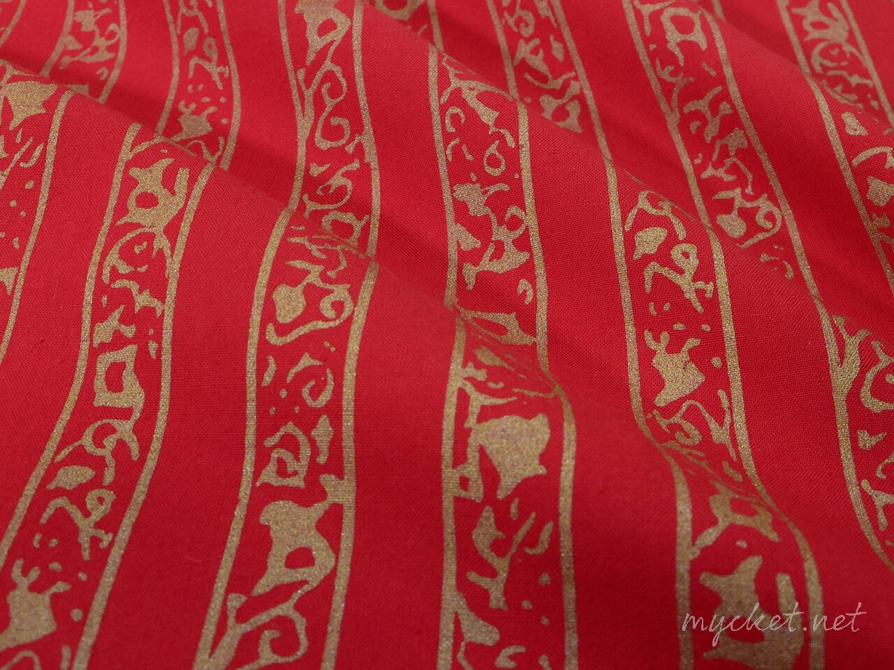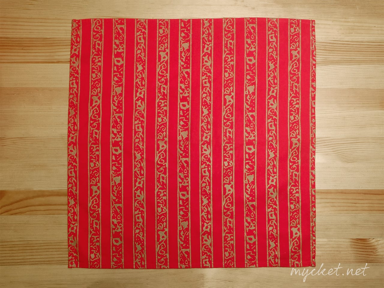 赤ベースに、落ち着いた金色のプリントが施されています。