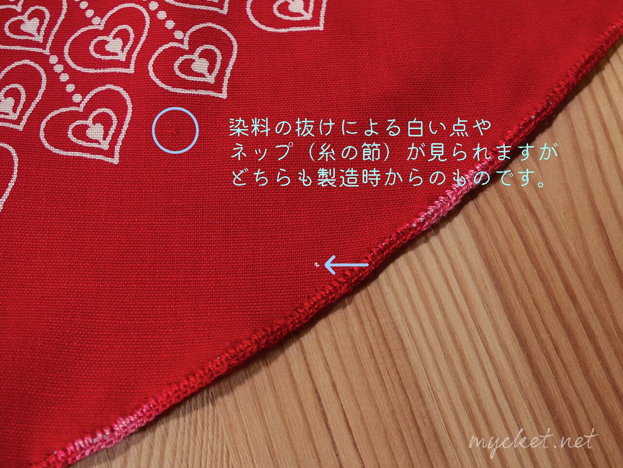染料の抜けによる白い点や、ネップ(糸の節)が見られますが