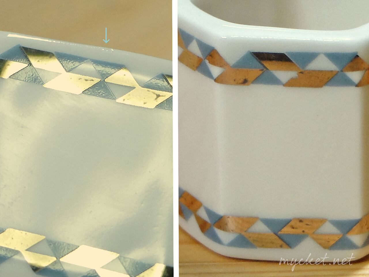 ・表面の模様の部分に、細かい剥がれや小キズが見られます(7枚目の画像)。