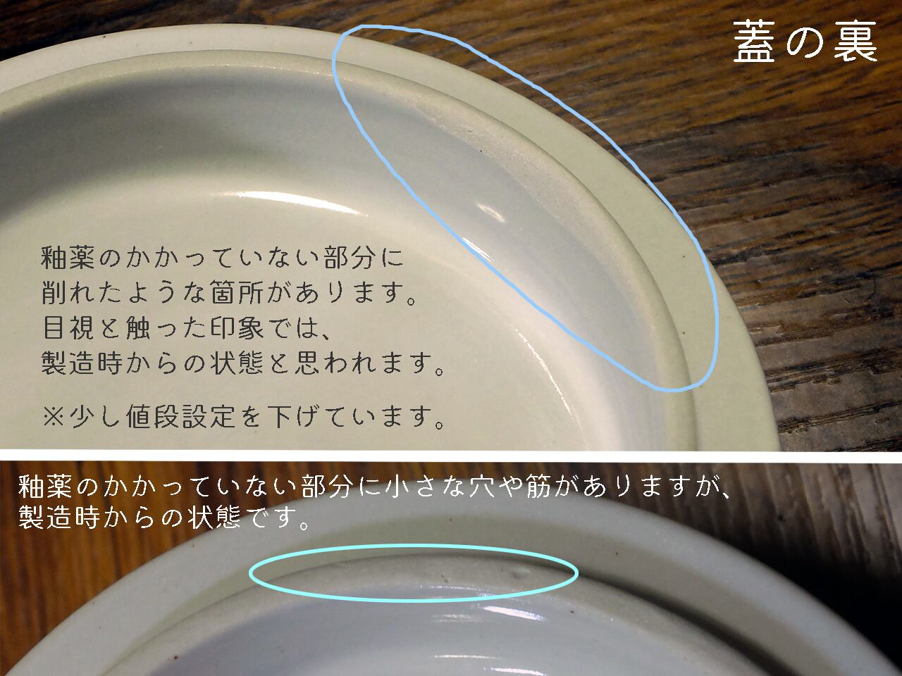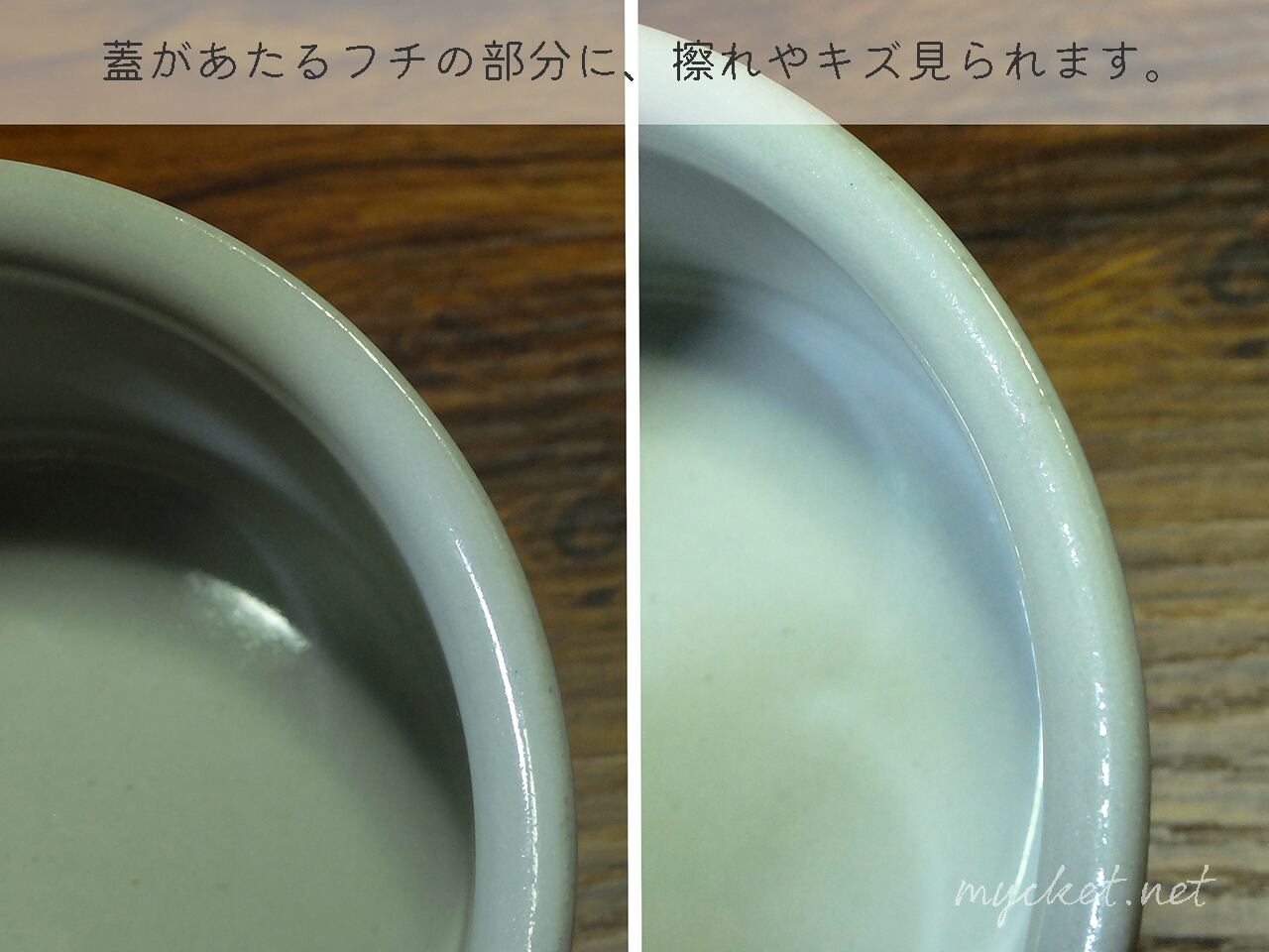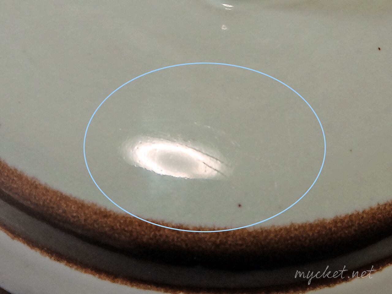・蓋の裏側の釉薬のかかっていない部分の小さな穴と筋。