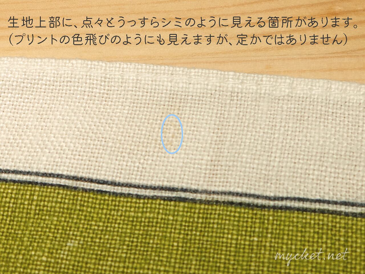 ・点々と黄みの汚れのように見える箇所がありますが、製造時のプリント飛びではないかと思われます(9枚目の画像)。