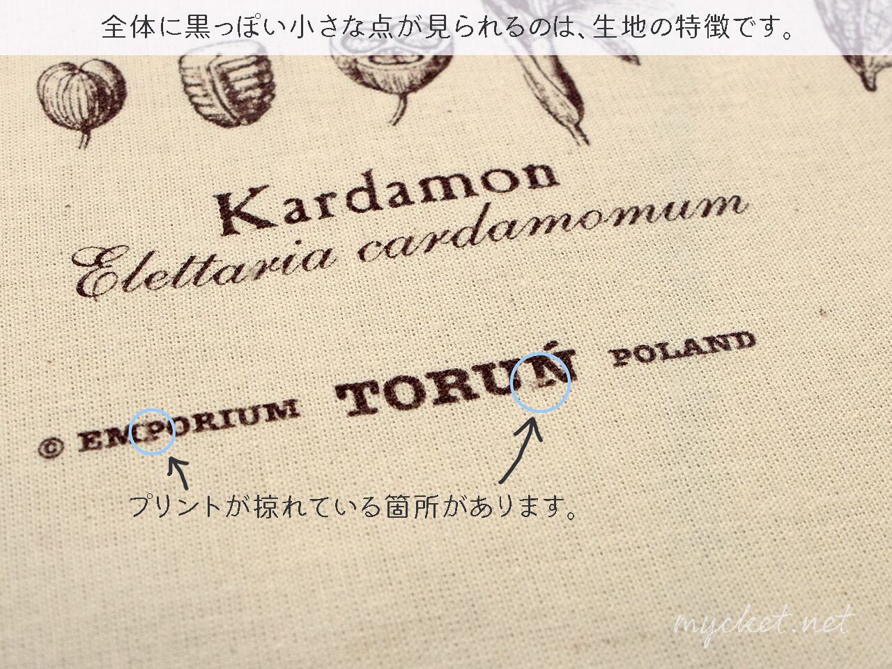 植物(スパイス)がプリントされた、ポーランドのクロス。
