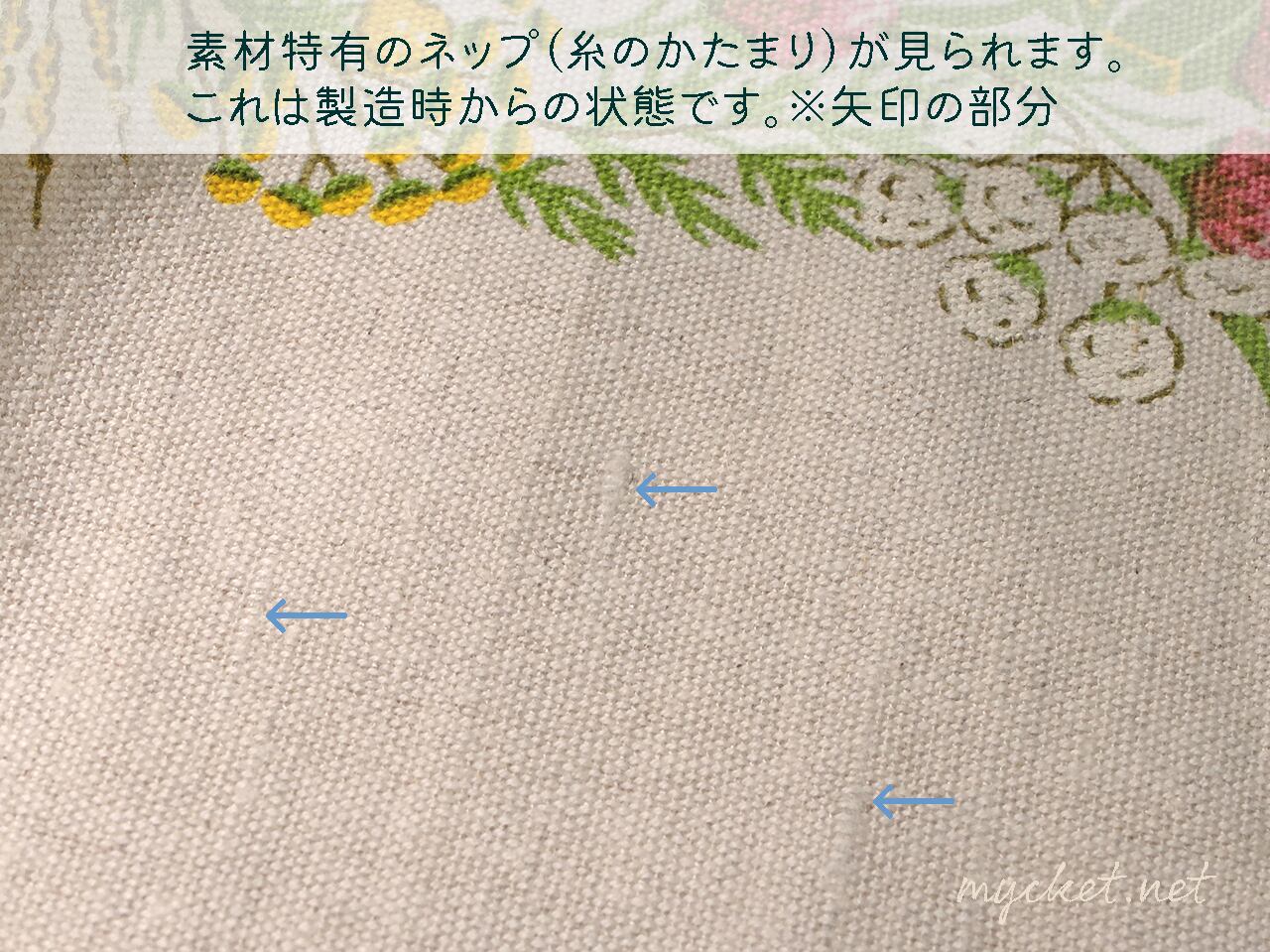 ・素材特有のネップ(糸のかたまり)が見られます(7枚目の画像)。