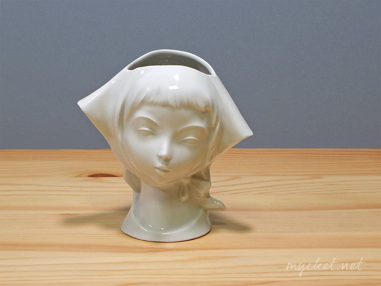 首から上を象った人の、頭の位置に花が生けられる仕様。