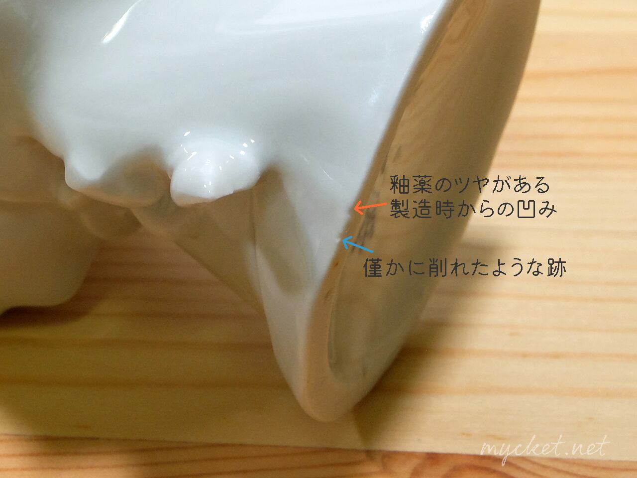 ・裏面の釉薬のかかっていない部分に僅かに削れたような跡があります(13枚目の画像)。