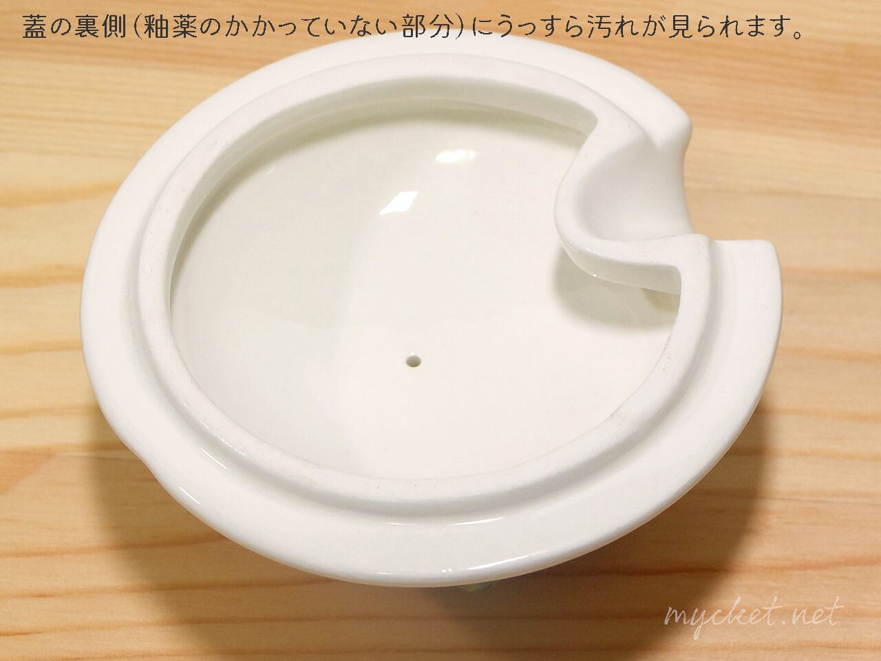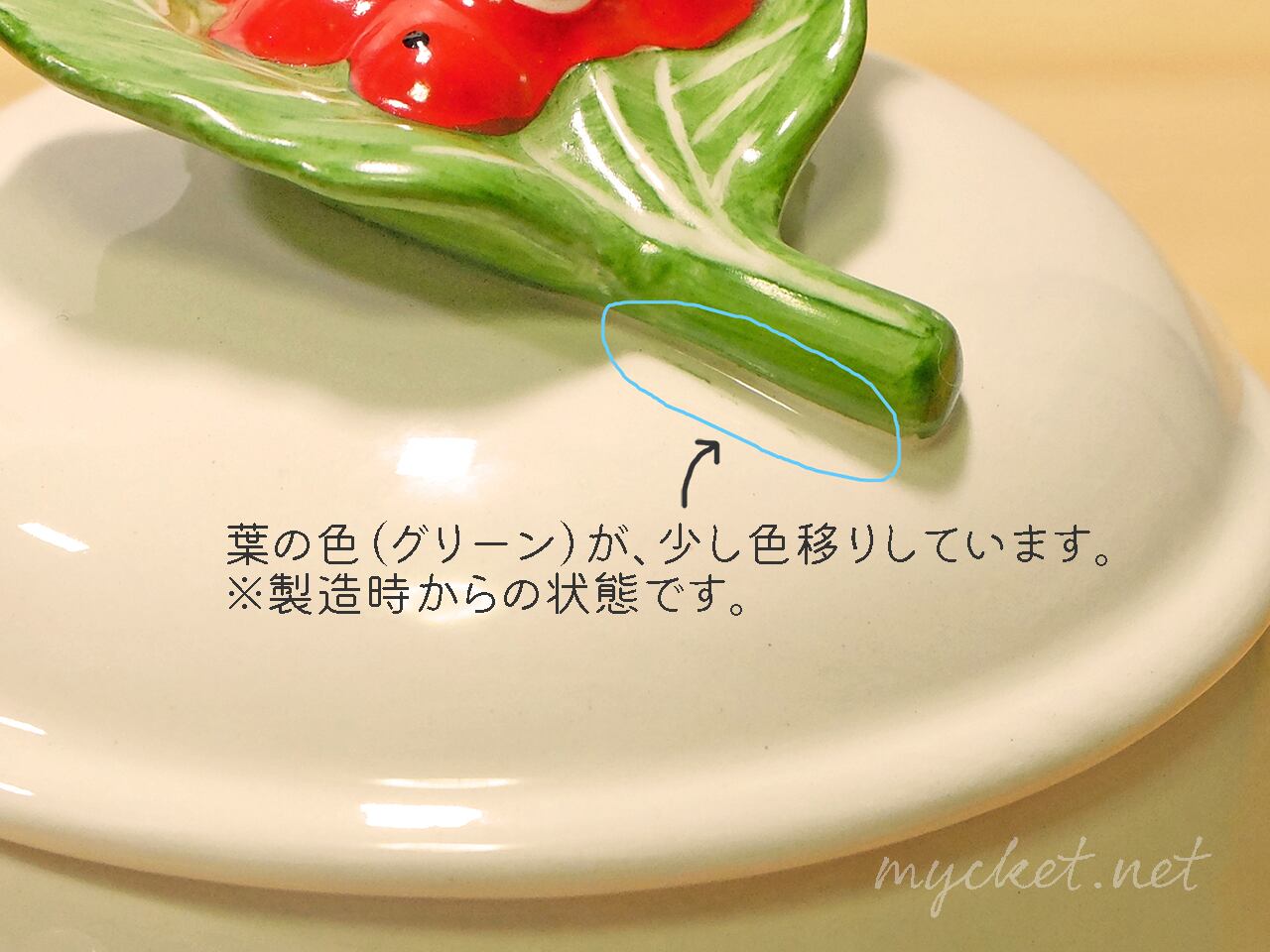 ・蓋に色移り(葉の緑色)が少しあります(7枚目の画像)。
