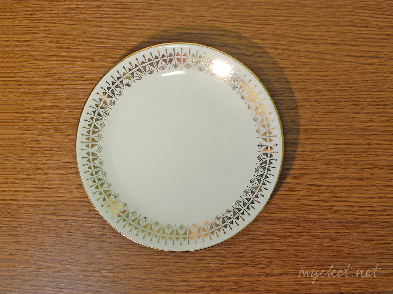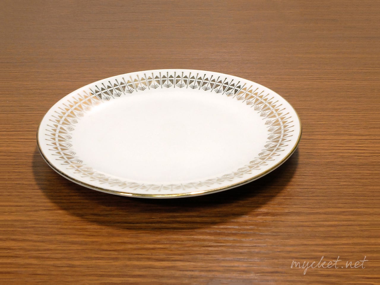 ゴールド(金色)の模様がフチに沿って描かれています。