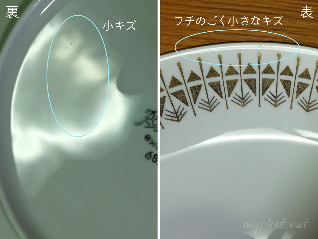 ・フチの金の縁取りに小さなキズや剥がれがあります(12枚目の画像)。